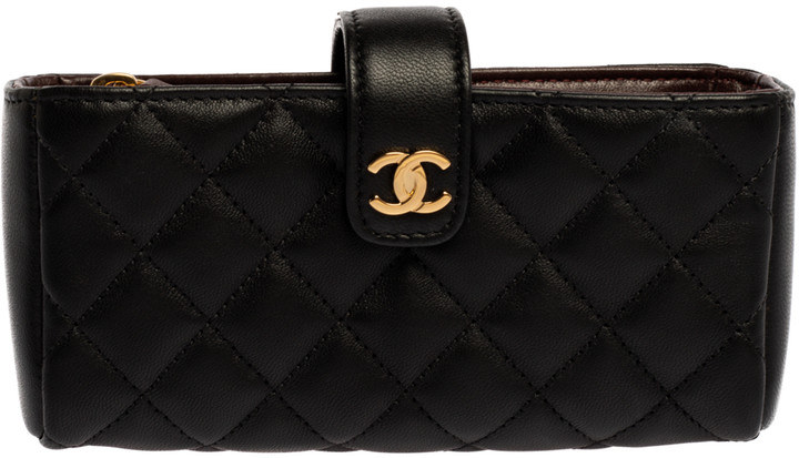 Chanel Black Quilted Leather Cc Phone Holder Clutch Shopstyle Bag Straps